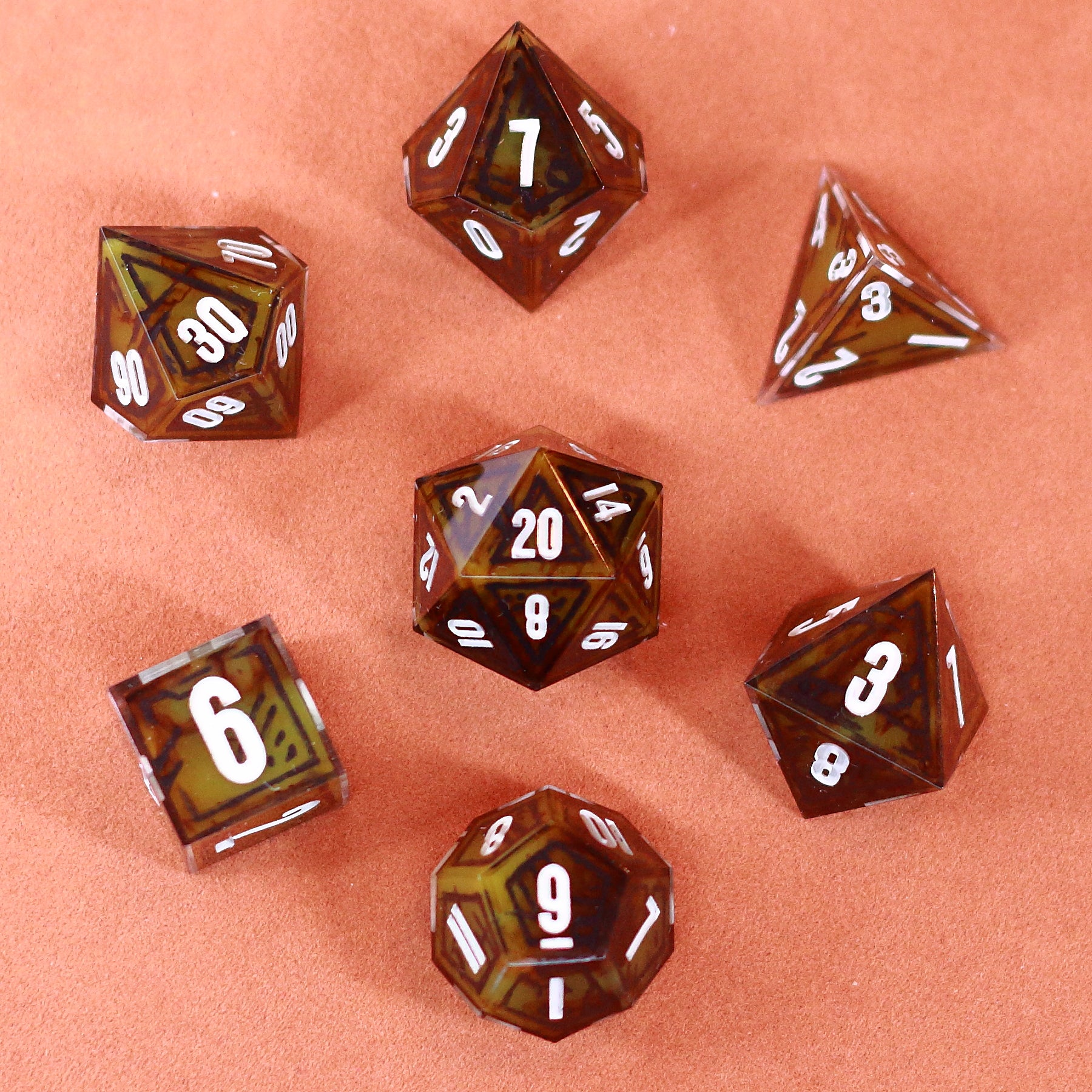 Because these are handcrafted dice, possible micro-flaws and minor imperfections or slight color differences may occur during the creation process. This, in no way, will effect dice rolls. Each set is checked to the best of my ability before shipping.