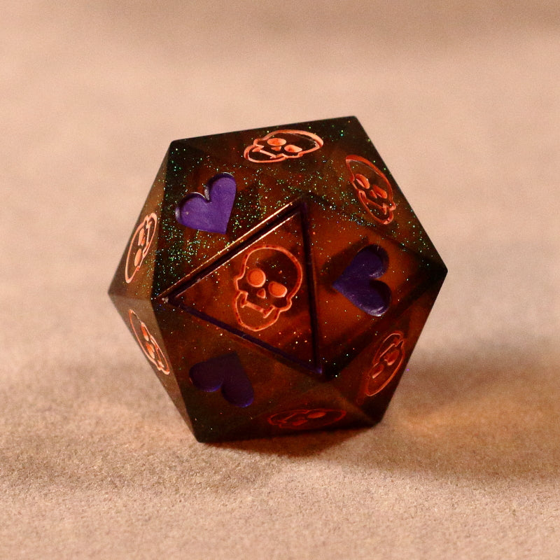 Because these are handcrafted dice, possible micro-flaws, minor imperfections, and/or slight color differences may occur during the creation process. Micro-bubbles may be present between Blank and shell. This, in no way, will effect dice rolls. Each set is checked to the best of my ability before shipping.